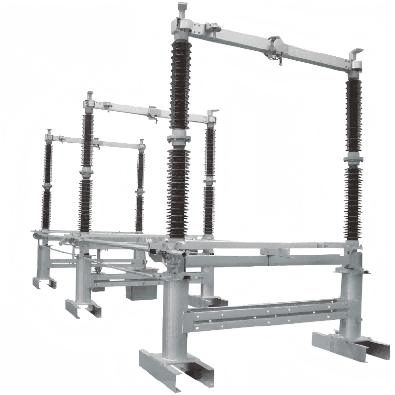 Deconectorul rotativ orizontal GW4 de la Lugao GW4 prezintă două coloane izolatoare pe fază, fiecare completată cu o tijă conductivă. Un mecanism de funcționare rotește coloanele izolatoare, conducând tija conductivă să se deschidă și să închidă întrerupătorul. Adăugarea întrerupătoarelor de împământare pe ambele părți ale bazei este negociabilă cu Lugao. Contactele sunt realizate din plăci de cupru îndoite și asamblate cu tija conductivă pentru întreținere și înlocuire ușoară. Potrivit pentru uz în aer liber, suprafața de oțel este galvanizată la cald pentru rezistență la coroziune, asigurând funcționarea pe termen lung chiar și în condiții meteorologice adverse. Tija conductivă este construită din aliaj ușor de aluminiu, oferind o suprafață mare de disipare a căldurii și o rezistență ridicată.